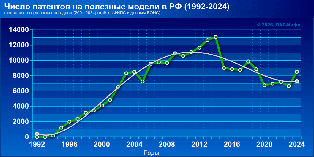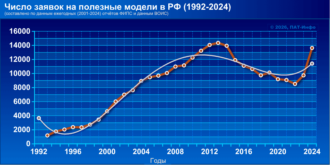 🔸 Число заявок на полезные модели (1992-2024)