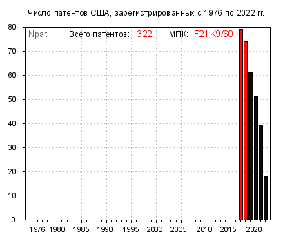 Ниже – раздел “Весёлые картинки” для девятилетнего интервала 2014-2022. Особо не рассчитываю, но всё-таки надеюсь, что данный материал сподвигнет какого-либо аспиранта взглянуть на свои научно-технические изыскания с патентной “колокольни”. Чтобы понимать, где он находится: на передовых рубежах техники или в арьегарде прогресса. Правда, иногда это приводит к печальным результатам, как, например, у меня 40 лет назад – когда направление диссертации пришлось изменить весьма кардинально.