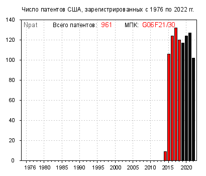 | ↑1 | ”Красивый” “порог” в 50 патентов выбран мной несколько произвольно, исходя из своего представления о том, что называть “активно развивающимся” направлением (технологией). 10 патентов в подгруппе за 5 лет – это явно мало, а 100 – много. Так что была выбрана “золотая середина”. |