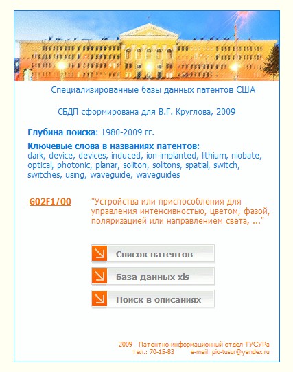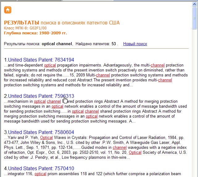 И, напоследок - в данном варианте информационного продукта имеется возможность поиска по всему массиву найденных патентов. Щелкаем по кнопке "Поиск в описаниях".