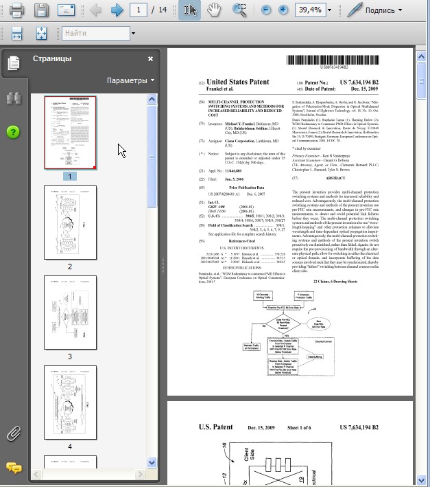 В открывшемся окне можем просмотреть собственно html-описание патента (только текст), или запустить просмотр pdf-варианта с "картинками"