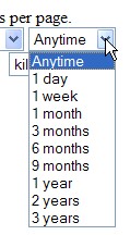 "Посвежее" ("Newer Than") или "повыдержаннее" ("Older Than") выбираете из следующих вариантов (рис. 16): без срока давности ("Anytime"), 1 день ("1 day"), 1 неделя ("1 week"), 1 месяц ("1 month"), 3 месяца ("3 months"), полгода ("6 months"), 9 месяцев ("9 months"), 1 год ("1 year"), 2 года ("2 years") и 3 года ("3 years").