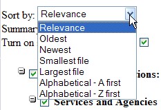 Далее выбираем, каким образом сортировать найденные документы: по релевантности ("Relevance"), по новизне ("Oldest" – сначала "древние", "Newest" – сначала "новьё"), по величине файла ("Smallest file" – сначала самые маленькие, "Largest file" – сначала самые большие), в алфавитном порядке ("A first" – по порядку, "Z first" – задом наперёд) (рис. 17).