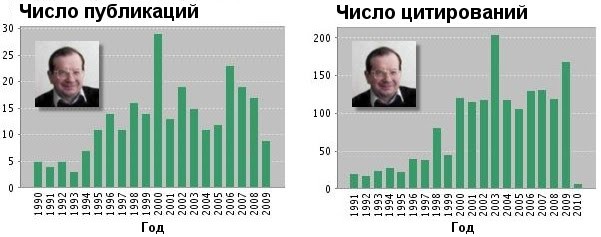 Рис. 1. Количество и цитируемость публикаций профессора "N" (февраль 2010 г.)