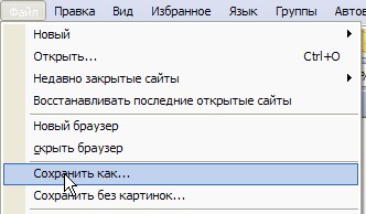 В браузере ("SlimBrowser") выбираем пункт меню "Файл – Сохранить как..." (рис. 23).