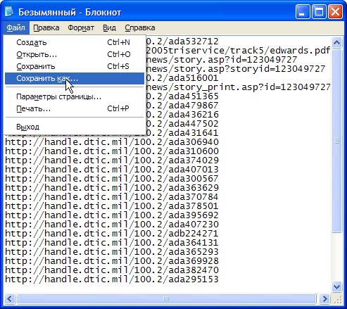 Ситуация меняется кардинально, когда в результате поиска на сайте "DTIC" найдено несколько сотен или тысяч ссылок на документы, из которых необходимо "выдернуть" ссылки на нужные статьи и отчёты в pdf-формате. Можно, конечно, "лопатить" всё это вручную, перебирая страницы и выискивая нужные ссылки. Но, столкнувшись с этой проблемой, я в очередной раз вспомнил фразу юного Володи Ульянова (впоследствии, Ленина, если кто не знает): "Нет, мы пойдем не таким путём. Не таким путем надо идти". Поэтому, чтобы не делать дурную работу, я написал несколько скриптов (в виде bat-файлов), позволяющих автоматизировать часть работы по уводу информации с сайта "DTIC". Те, кто героически дочитал до этого места, может переходить к следующему разделу.