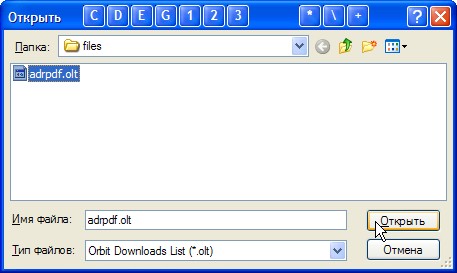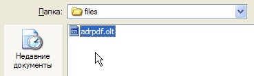 Сохраняем полученный файл под именем "adrpdf.olt" в папку "c:\downloads\files\" (рис. 37).