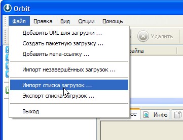 Запускаем программу "OrbitDownloader" и импортируем список загрузок, т.е. наш любимый "adrpdf.olt" (рис. 39 - 40). Те, кто еще "не ездил" на "OrbitDownloader", могут ознакомиться с примером настроек этой замечательной программы здесь.