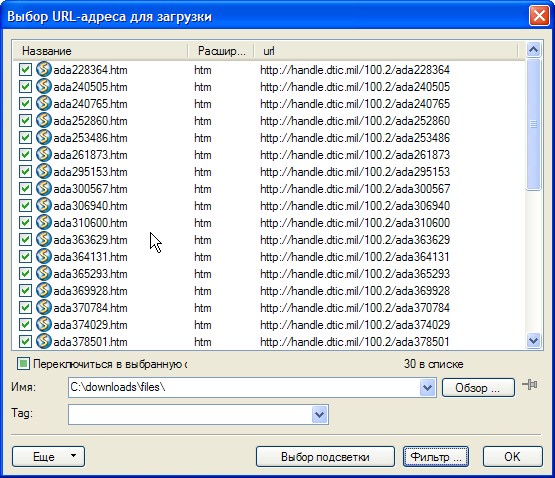 Рис. 28. Закачка html-страниц с результатами поиска