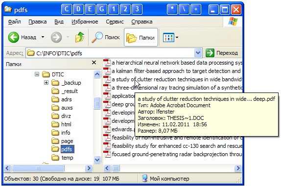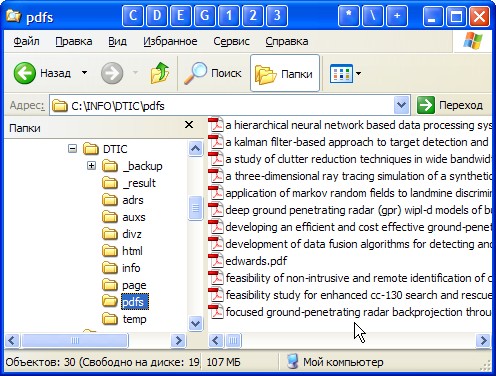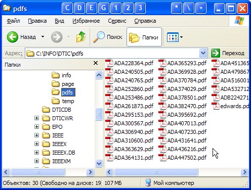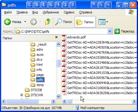 Рис. 50. Папка "c:\info\dtic\pdfs\" с закачанными pdf-файлами