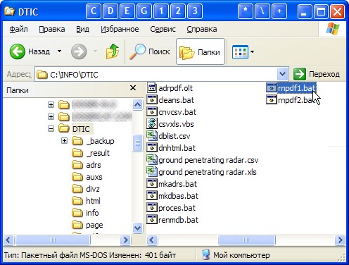 Убедившись в наличии файла "dblist.csv" в папке "c:\info\dtic\" (рис. 53), дважды "тюкаем" по bat-файлу "rnpdf2.bat".