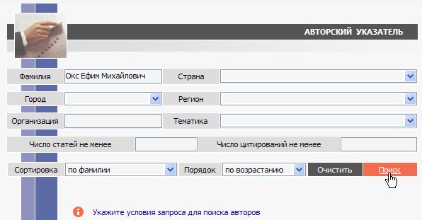 В качестве примера набираем Ф.И.О. моего любимого автора – Окса Ефима Михайловича – зав. кафедрой физики ТУСУРа, уже неоднократно упоминавшегося на этом сайте только с положительной стороны, а затем жмём кнопку "Поиск" (рис. 3).