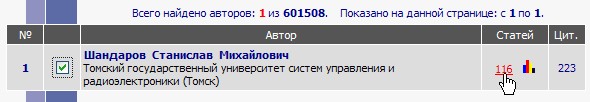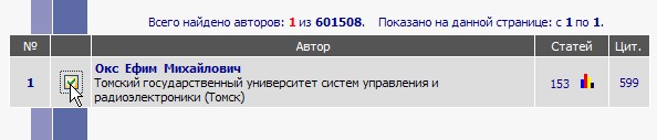 Поскольку Ефим Михайлович в ТУСУРе такой один, то и результат (рис. 4) найден однозначный: один автор из более чем 600000 человек.