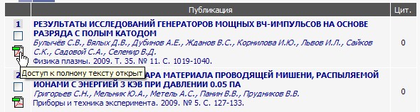 Иконка pdf-файла с зелёной меткой (рис. 12) указывает на то, что в БД eLibrary имеется полнотекстовая версия статьи, которую вы можете скачать.
