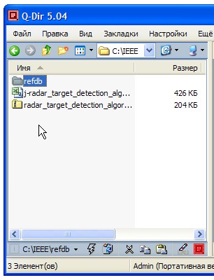 "Перетаскиваем" файл "j-radar_target_detection_algorithms.csv" в папку "refdb". Для наглядности процесса "селекции" и возможности поиска сразу по нескольким базам данных рефератов я "закинул" в эту папку ещё три csv-файла по радиолокационной тематике.